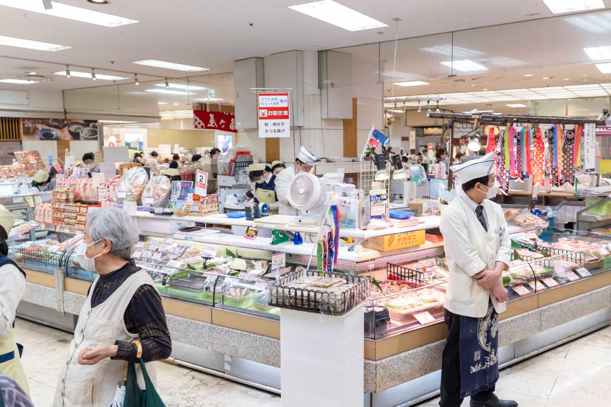 山形屋グループ各店にて海産物を販売しております。